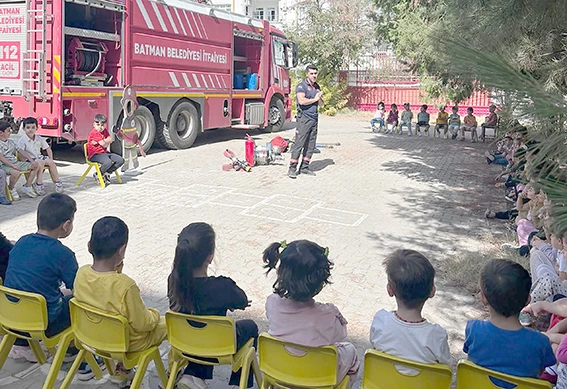 Batman Belediyesi İtfaiye Müdürlüğü, çocuklara yangın güvenliği konusunda farkındalık kazandırmak amacıyla eğitim çalışmalarını sürdürüyor.