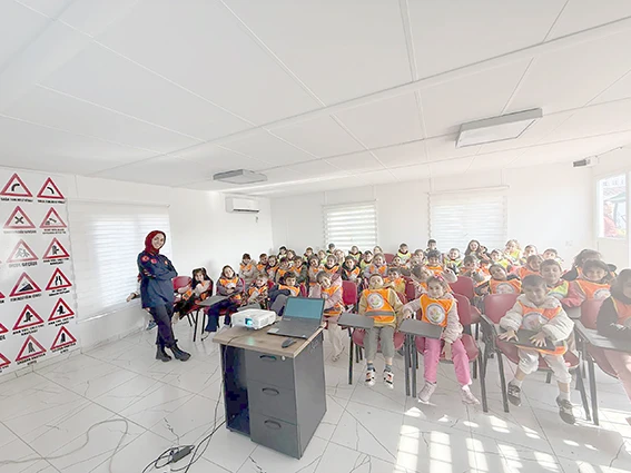Karabağ Parkı'nda bulunan trafik eğitim salonundaki eğitime öğrenciler büyük ilgi gösterdi.