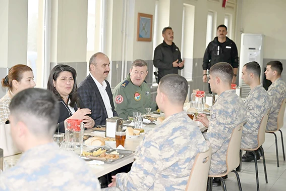Bayram namazı sonrası Vali Ekrem Canalp, eşi Dr.Ayten Canalp ve Garnizon Komutanı Tuğgeneral Mehmet Ali Koç ile birlikte 14. İUS ÜS Komutanlığında vatani görevini yapan Mehmetçik ile bayramlaşarak, kahvaltı sofralarına ortak oldu.