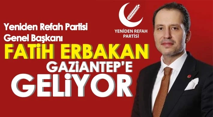 Yeniden Refah Partisi Gaziantep milletvekili adaylarını tanıtacak. Yeniden Refah Partisi Genel Başkanı Fatih Erbakan'ın katılımıyla gerçekleşecek olan milletvekili aday tanıtım toplantısı 29 Nisan Cumartesi günü Şehitkamil Kültür ve Kongre Merkezi'nde yapılacak. Aday tanıtım toplantısı saat 19.00'da başlayacak.
